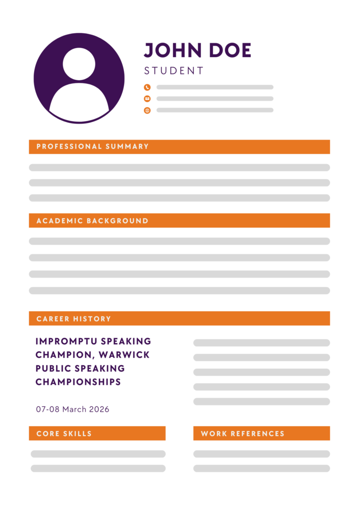 University applications recognise the value of competitive achievements. A distinction from the Warwick Public Speaking Championships adds credibility to your portfolio, demonstrating your skills and dedication in a way that stands out.